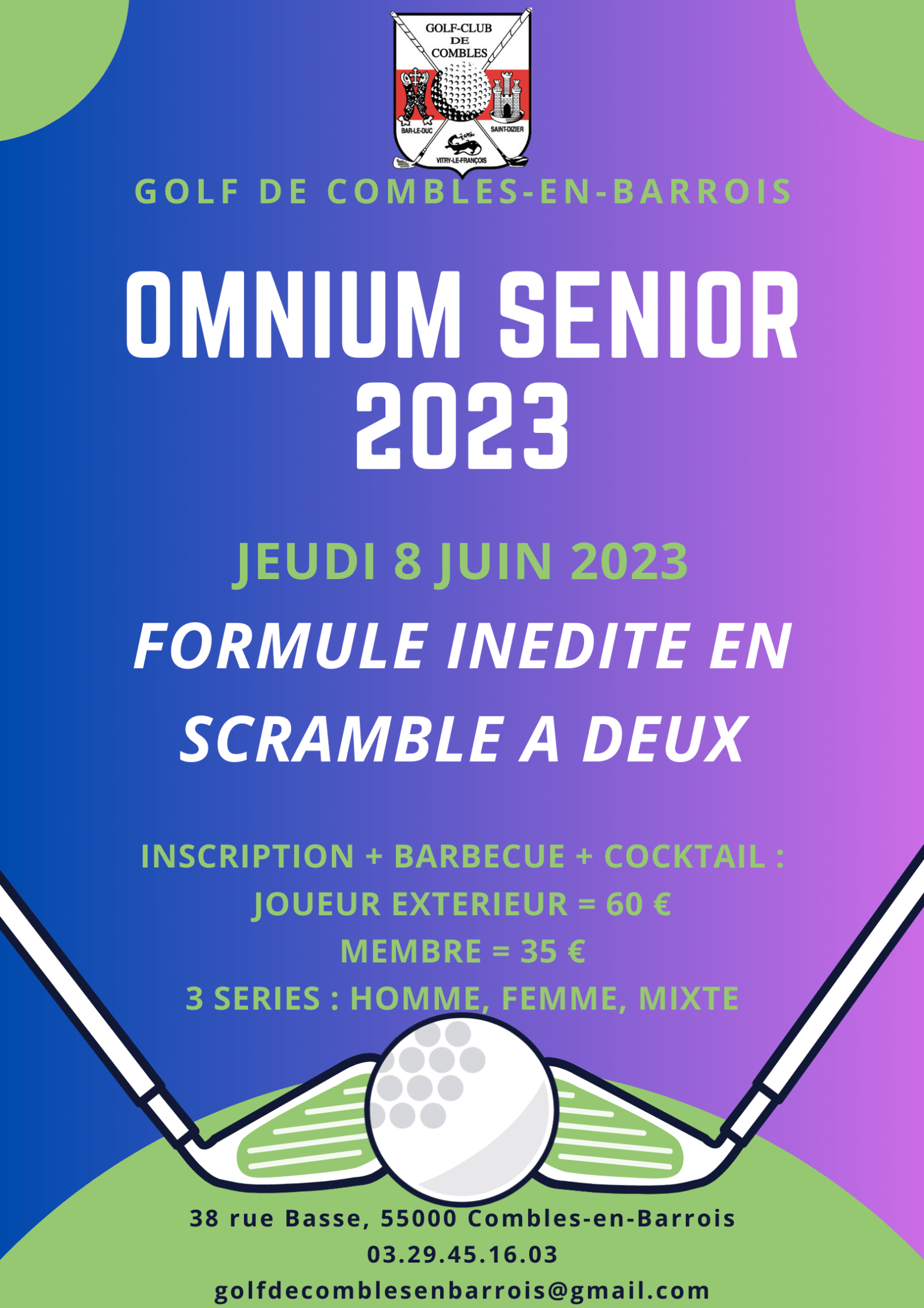Pour la première fois l’Omnium Seniors de Combles-en-Barrois se jouera en formule scramble. Il se disputera le jeudi 8 juin. Les inscriptions comprenant un barbecue toute la journée et un cocktail de remise des prix sont à 60€ pour les joueurs extérieurs et 35€ pour les membres du club. Inscription au secrétariat du club avantLire la suite « OMNIUM SENIORS 2023 »